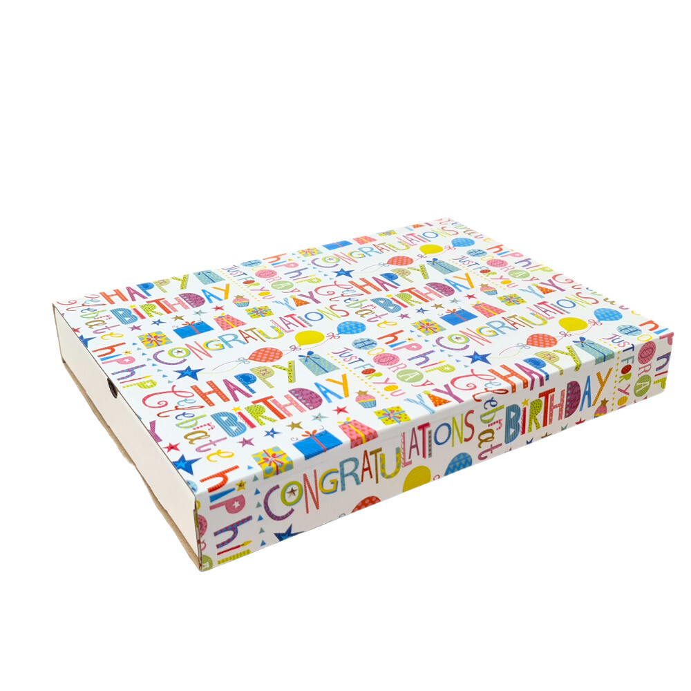 A great two piece box with a base (tray) and sleeve. They come supplied flat, are easy to assemble