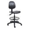 Industrial PU typist chair made with black polyurethane. Rake back height adjust mechanism. Black nylon base.