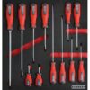 Expertly crafted to deliver exceptional results, this 12-piece torque screwdriver set combines precision-engineered chrome vanadium steel blades with magnetic tips and a unique dual-grip triangular handle designed to improve comfort and allow greater torque, meeting DIN ISO 2380 and 8764 standards to ensure consistent performance in demanding industrial environments. The set is supplied in a 2/3 width foam inlay sized 39.5 x 37 cm that fits tool roller cabinets and features a durable top layer and a vivid red underlay that gives instant recognition of any missing tool, while finger cut-outs permit rapid, effortless retrieval to keep workflow efficient. Included are a comprehensive range of drivers to cover routine maintenance and specialist tasks, specifically Crosspoint No.2 stubby, Crosspoint No.2 100 mm, Crosspoint No.2 150 mm, flared 6.3 mm stubby, flared 6.3 x 150 mm, flared 9.5 x 250 mm, parallel 5.0 x 100 mm, parallel 5.0 x 200 mm, parallel 5.0 x 250 mm, Pozidriv No.1 75 mm, Pozidriv No.2 100 mm and Pozidriv No.3 150 mm, providing the versatility needed across workshops, warehouses and factories. The foam inlay protects expensive kit, prevents tools sliding during transit and deters loss or theft, delivering safety and peace of mind by reducing the risk of tools being inadvertently left in vehicles, aircraft or machinery. Ergonomic handle design reduces user fatigue and improves safety while the magnetic tips speed fastening operations and improve accuracy. This organised solution encourages systematic tool control, lowers downtime through rapid location and replacement, and offers long-term economic benefit by enabling in-house maintenance and reducing dependence on external services, making it an essential investment for professionals and facilities seeking durable, efficient and secure tool storage. Finished in black and red with robust steel and foam construction, the kit resists corrosion and is easy to clean, delivering long-term reliability in harsh workshop conditions. Its compatibility with standard tool roller cabinets and chest formats simplifies fleet standardisation and aids audit compliance for asset control, making it ideal for MRO programmes.