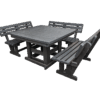 Top Support: 32 x 32mm square tubing – cold rolled with 1,2mm wall thickness. Leg: 32 x 32mm square tubing- cold rolled with 1,2mm wall thickness. Levelling adjusters.