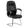 Executive high back chair made with black bonded leather comes with torsion knee tilt mechanism. Chrome spider base, chrome arms with leather cover.