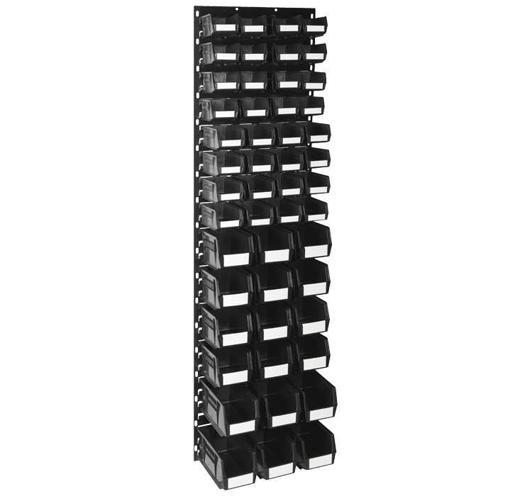 500 x 1800 black panel complete with 50 black Linbin ® storage bins |
