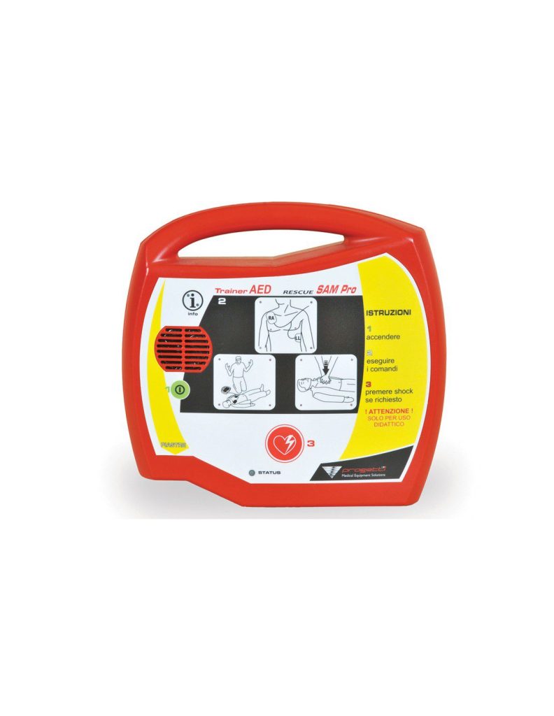 RESCUE SAM TRAINER PRO is the system designed to effectively train emergency responders in the use of the semi automatic external defibrillator RESCUE SAM, thanks to simple and clear spoken and visual instructions. 5 pre-programmed scenarios selected directly from the remote control. Real shock simulation in total safety.