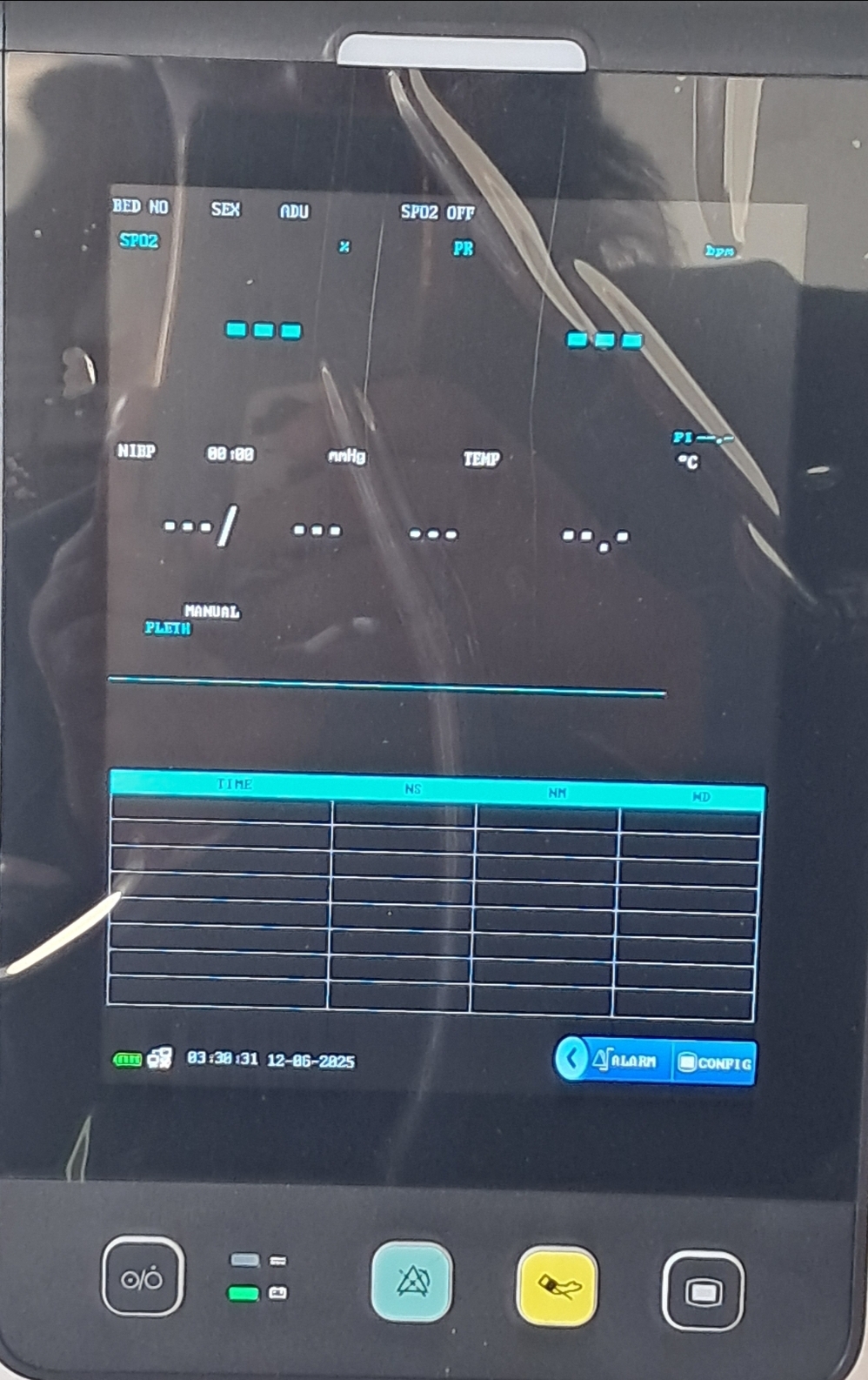 Full screen parameter reading Measuring parameters . Temperature . Spo2 And Nibp