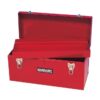Recommended for tradespeople and serious DIYers working on construction sites, mobile service engineers and workshop professionals who require robust, portable and secure tool storage, this heavy-gauge steel barn-style tool box combines rugged durability with practical organisation. Constructed from thick, rigid steel and finished in a hard-wearing red cellulose paint, it resists everyday impacts, abrasion, moisture and site grime while protecting valuable equipment and extending the service life of both hand and power tools. The 610 x 205 x 185 mm footprint and 5 kg construction provide a compact yet capacious base compartment suitable for power tools and larger implements, while the removable tote tray keeps frequently used hand tools, fasteners and small parts separated and instantly accessible without disturbing the main load. Full-width piano hinges reinforce lid alignment and strength, the two-piece overlapping doors incorporate an integrated padlock eye for secure closure, and the fixed carry handle is positioned for balanced transport between vehicles and job locations. Engineered for continuous industrial use, the design simplifies daily workflow by eliminating rummage, reducing downtime and lowering the risk of damage to precision items; organisation within the box fosters professionalism and speeds task completion across varied applications. The box is equally at home in harsher conditions typical of construction and field service or in a workshop or garage used by serious hobbyists, and it can be stacked as part of a broader site storage strategy where compact, secure units are required. Routine care requires only occasional cleaning and touch-up, and the uncomplicated construction makes repairs straightforward; a separately purchased padlock completes the security solution and the relatively light mass combined with the compact footprint makes it easy to carry and stow in vans or lockers. A practical, cost-effective investment, this toolbox offers a durable storage solution with easy portability, simple maintenance and the security provisions necessary for shared or remote sites, and it delivers clear operational benefits by keeping tools organised, protected and ready for use whenever and wherever they are needed.