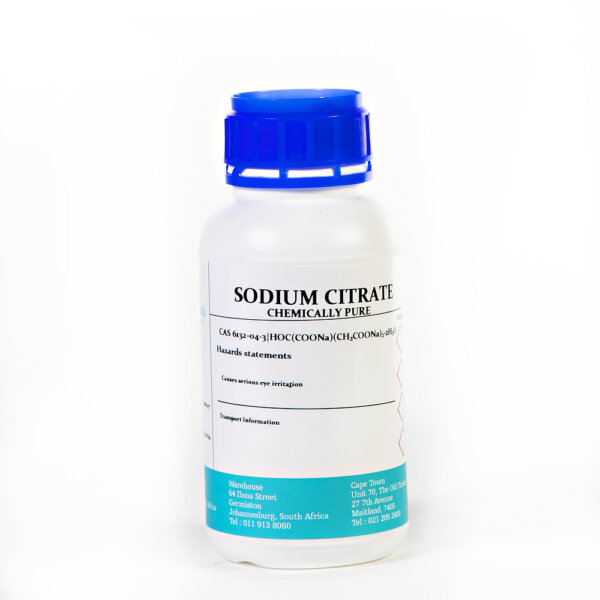 Sodium Citrate CP – Identification of Product Chemical Code: CHE-S11 Chemical Name: tri-Sodium Citrate Chemical Grade: CP Chemical Formula: C₆H₅Na₃O₇ · 2H₂O Chemical Weight: 294,10 g/mol CAS No: 6132-04-3 Chemical Synonyms: Trisodium Citrate Dihydrate, Citric Acid, Trisodium Salt Dihydrate, Sodium Citrate Tribasic Dihydrate